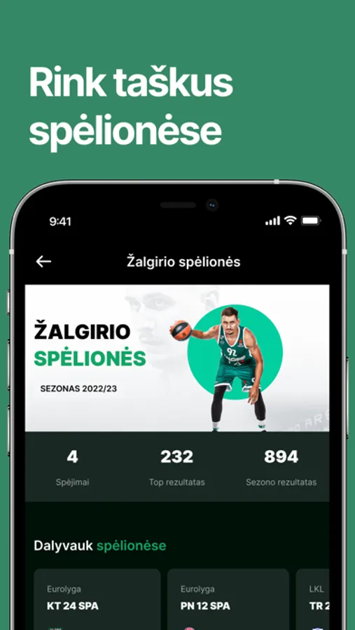 Taisyklės ir sąlygos: https://policy.zalgiris-app.zalgirisventures.com/terms-and-conditions/lt