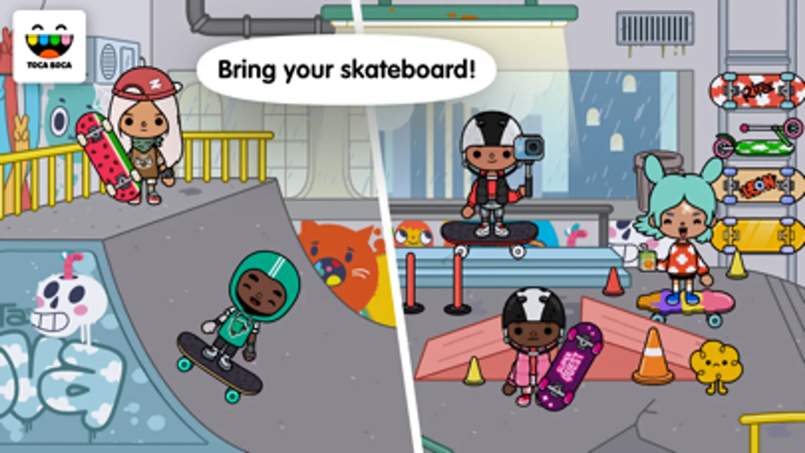 Welcome to Toca Life: After School, where how you spend your time is up to you! Explore your favorite hobbies — or discover a new one! Skate, create art, dance, make music, play sports or just chill! Meet 27 characters, explore four locations and have as much fun as you can before it’s time to head home!