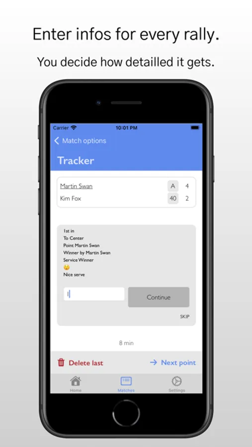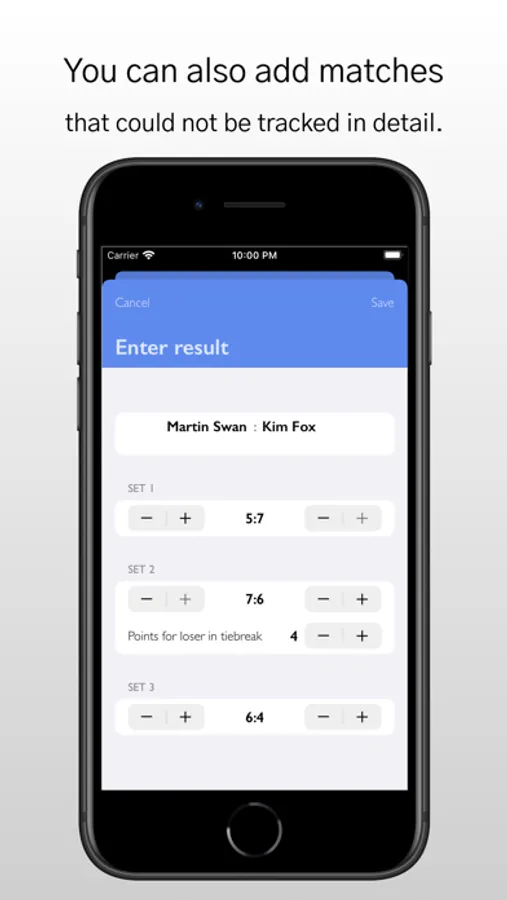 2) Enter the final result of your match and add some info about your opponent and the match itself. This option enables you to get a great overview over your season.