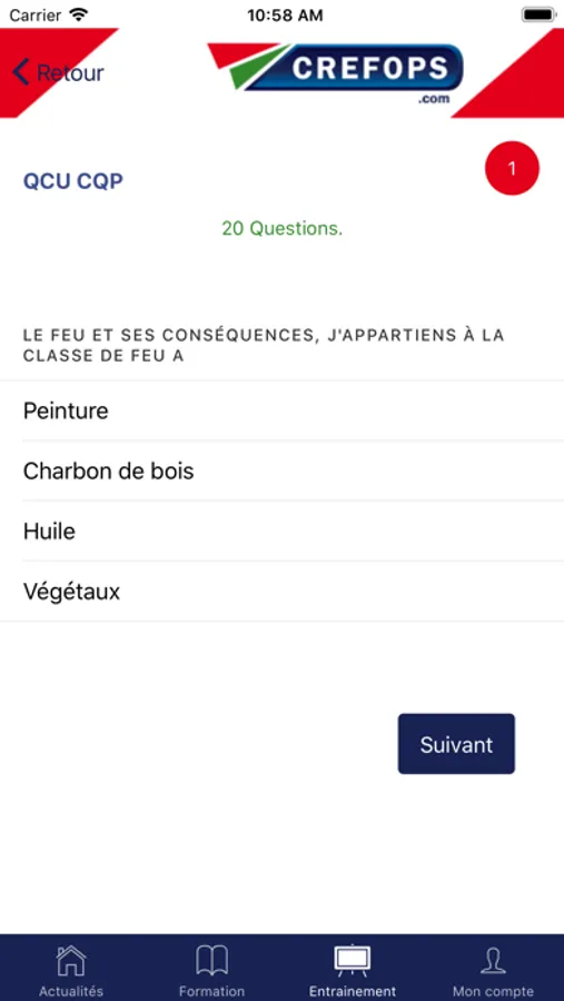 Des tests de type QCM, ou plus précisément "QCU", vous aident à préparer votre formation et votre examen TFP-APS, SSIAP ou SST.
