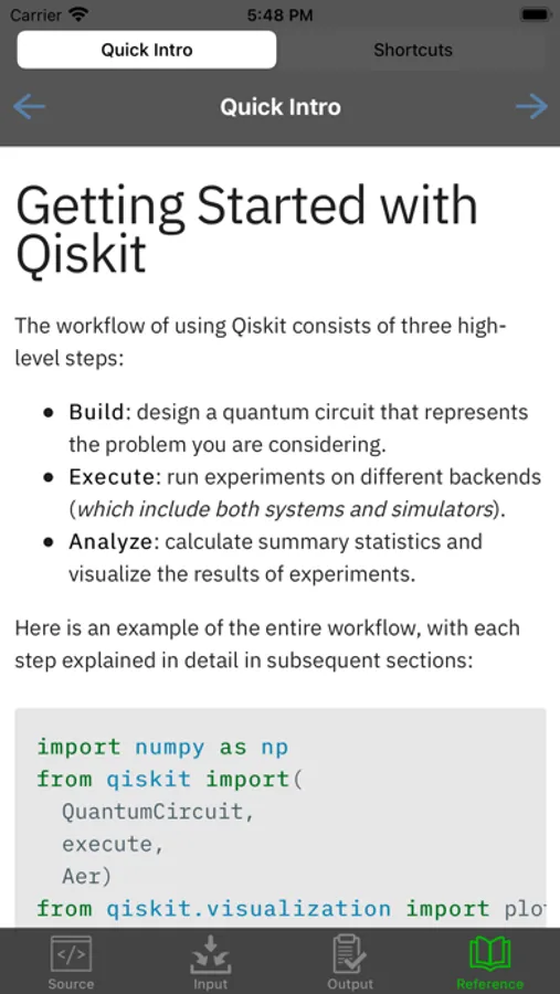 Write quantum codes directly on your iPhone, iPad and iPod Touch! This app is ideal for learning and testing code snippets!