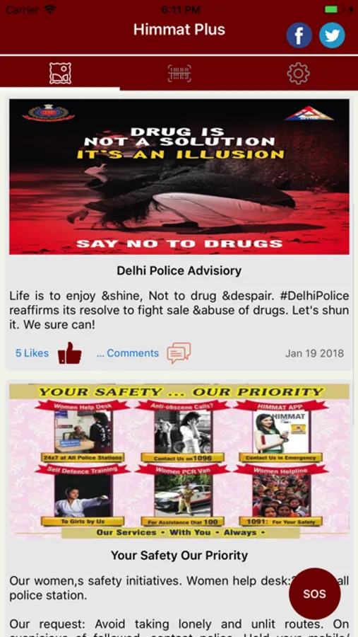 User needs to register in app after downloading from store to get registration key(OTP) which needs to be entered to complete application configuration. As soon as the user of Himmat Plus app raises the SOS alert from the Himmat Plus App, the location information and audio-video is transmitted to Delhi Police control room. Delhi Police can then immediately send the nearest Police help to the victim.