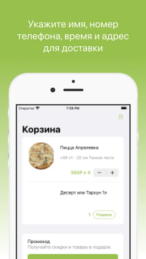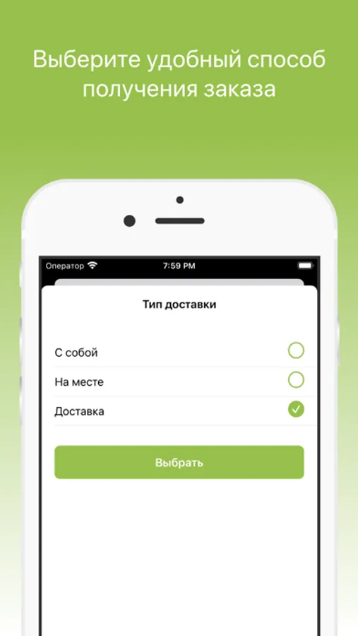 Укажите время, когда хотите прийти за своим заказом или выберите доставку с указанием времени и адреса доставки.
