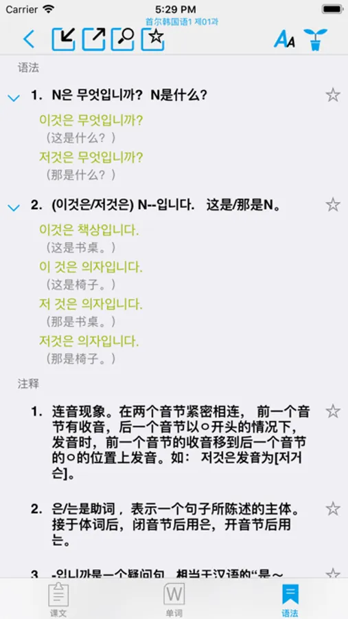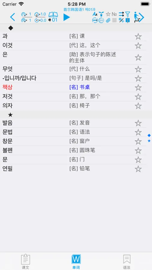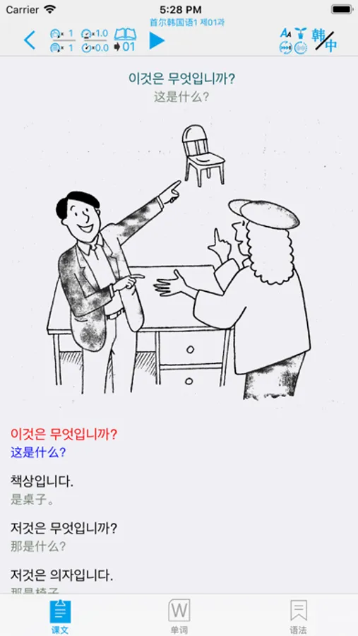 APP参照《首尔韩国语》课程制作而成。包含了1〜4册的课文,听力,单词和语法等4大部分。全部的课文和生词都配有真人的发声。您可以通过手机和平板进行下载。方便任何有需要的朋友方便快捷的学习,能够快速强化您的听,说,读,写能力。本APP集成了超强的复读功能,可以根据自己的需要对每个单词、每句话或者整篇内容进行一遍或多遍的复读,洗脑式的复读可以加强记忆。同时,您还可以在“设置”里进行设置后台播放,方便您在移动中使用。