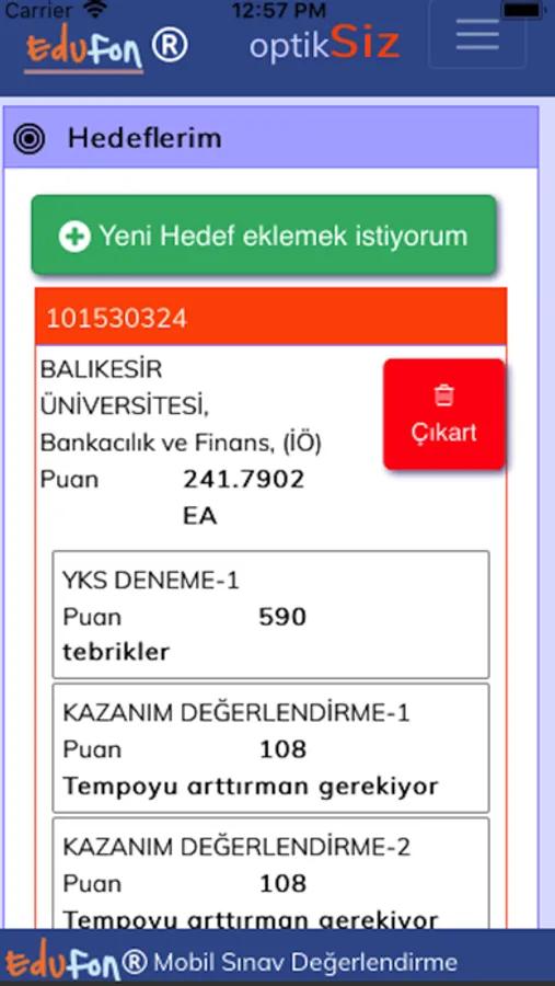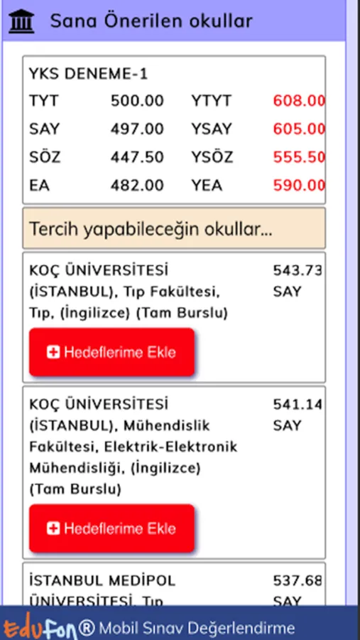 fakülte hedefinizi belirleyip ileride mi geride mi olduğunuzu takip edin.