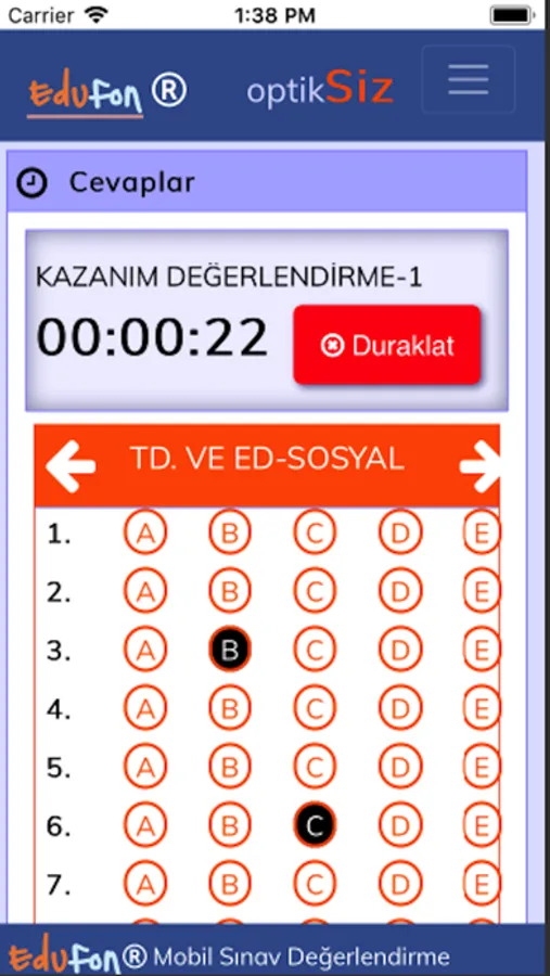 optik kağıda bağlı kalmadan akıllı telefon üzerinden sınav.