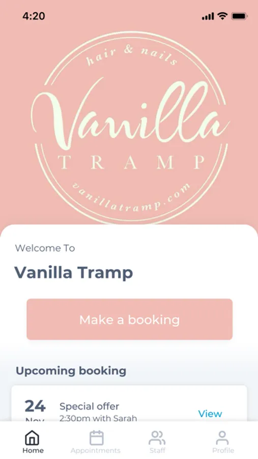 The Vanilla Tramp app makes booking your appointments and managing your loyalty points even easier. You're just a few taps away from feeling good and looking great!