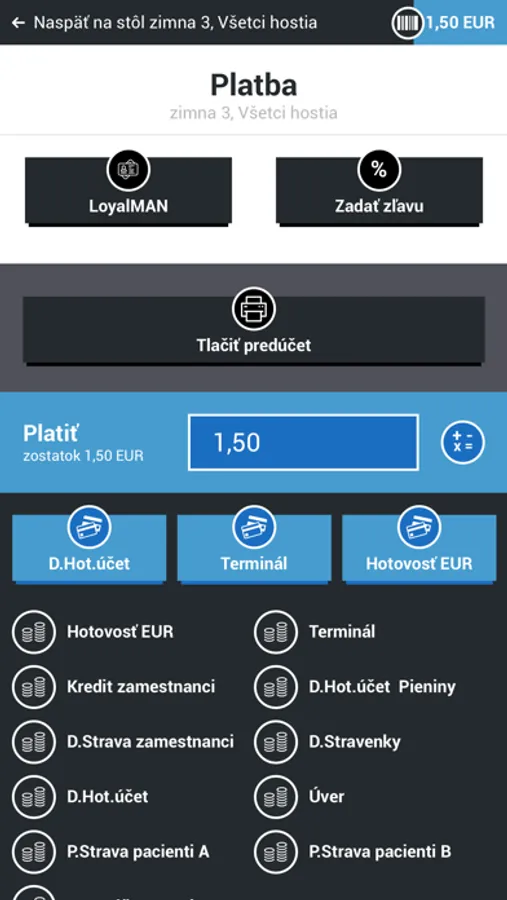 FoodiePOS and FoodieAPP are advanced cash registers for gastronomy bussines. FoodieAPP is mobile version. It allows waiters to register the meals and drinks that guests order. The table's bill is automatically charged with the order and at the same time order statements are printed on voucher printers or displayed on cook displays in the appropriate kitchen (kitchens). FoodiePOS offers the staff functions such as order cancellation, transfer of the order to a different table, payment of the whole bill or its part in cash, by credit card, on credit. If it concerns a resident guest, it is possible to charge the expenses directly to the hotel bill. Even non-standard operations can be solved, such as the charging of a Swedish (buffet) table, the menu and personnel fare.