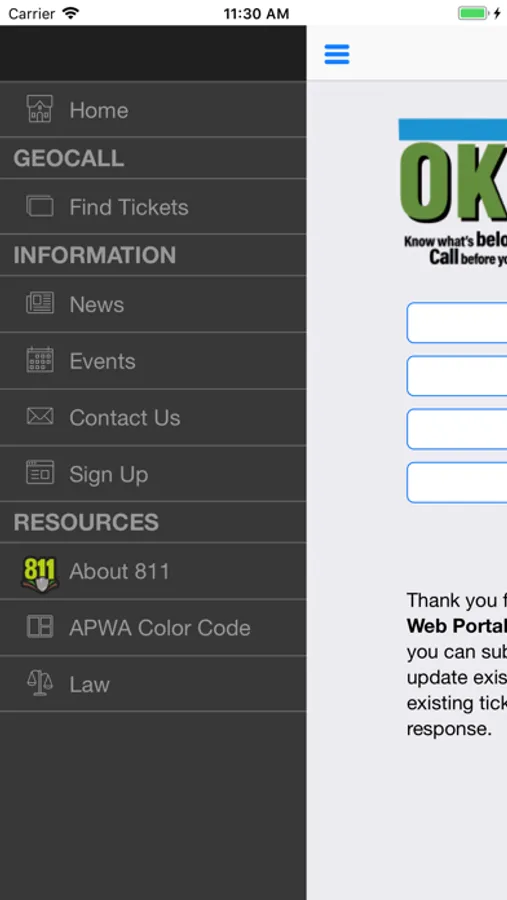 The OKIE811 mobile app offers fast and easy access to many resources for facility operators, excavators, and homeowners. You can submit a locate request or search for past tickets. You can also access important information on digging safely, how to prevent damage to underground facilities, and what is required by Oklahoma’s law.