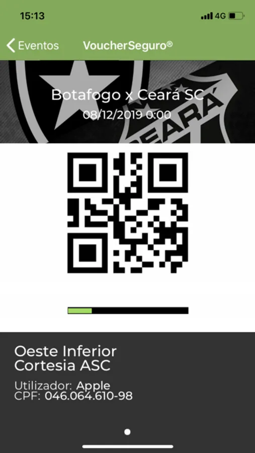 4. Se você adquiriu mais de um ingresso para um mesmo evento, ao selecionar o seu evento todos os vouchers estarão lá. Para visualizar, é só rolar a tela.