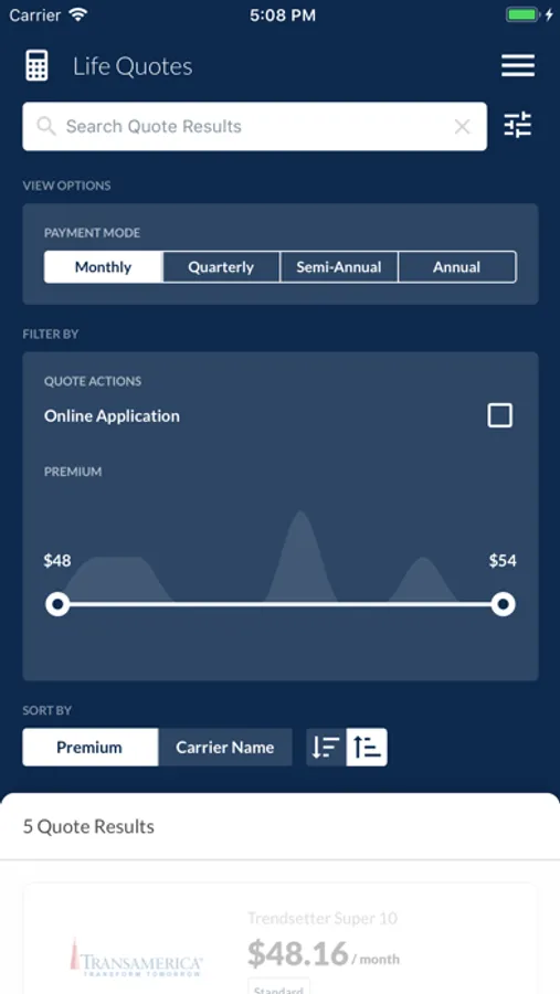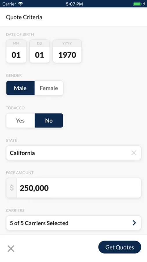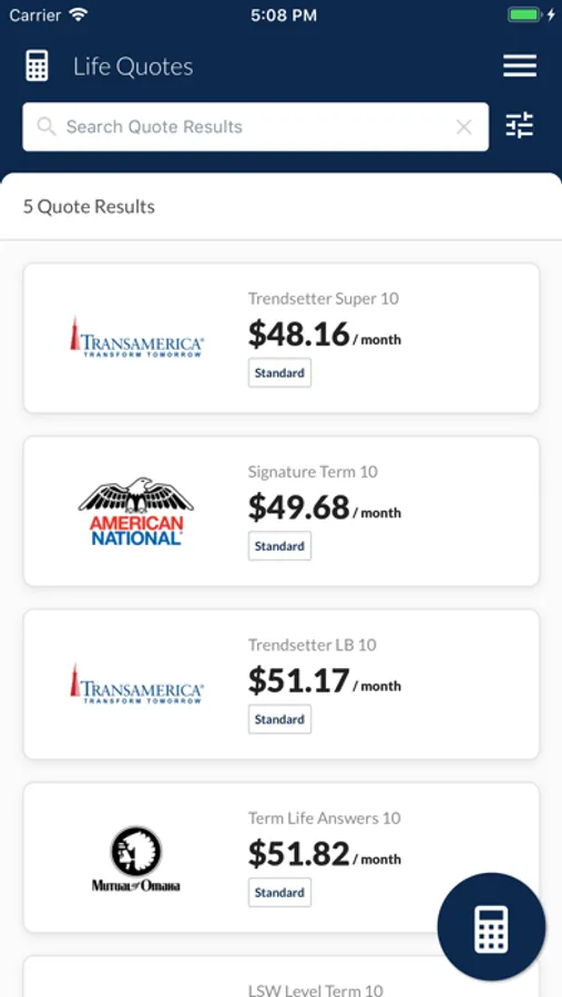 This completely free app delivers quote comparisons for 14 life insurance carriers. Quotes are given for all 50 States. Are you a life insurance agent? Sign up for a free account to use powerful agent tools.