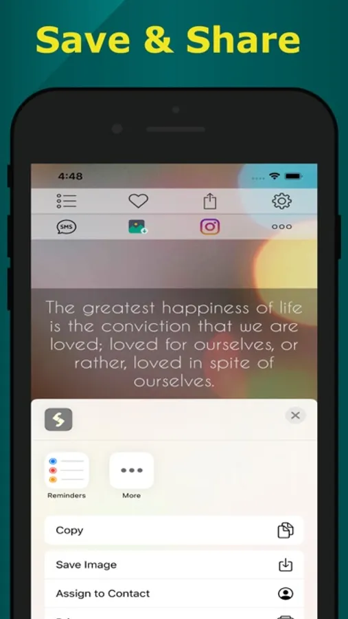 QuotePlus allows you to take daily or your own quotes, adjust their display and background with provided templates or your own background pictures and share them with your friends.