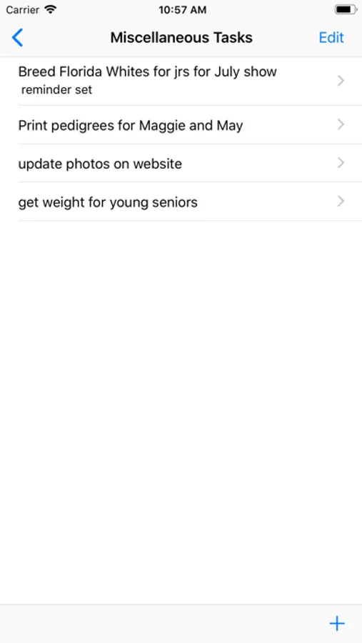 • Keep a list of all the miscellaneous rabbit and cavy related tasks you want to get done right in the app, and set a date time for a notification if you want a reminder.