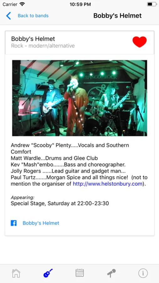 This app will guide you through the bands appearing, stage times and so on. The app was made with the full cooperation of the Helstonbury organisers