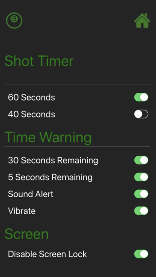 A fully customisable 8 Ball Shot Timer, with built in sound, vibration and visual colour alerts that minimise distractions and allow the user to focus fully on officiating the game.