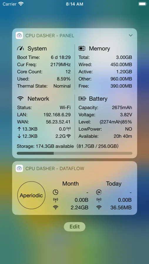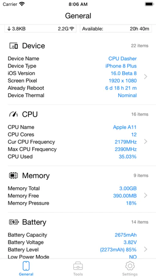 The key is: the current frequency, memory details, detailed battery, network information is updated in real time. wow!