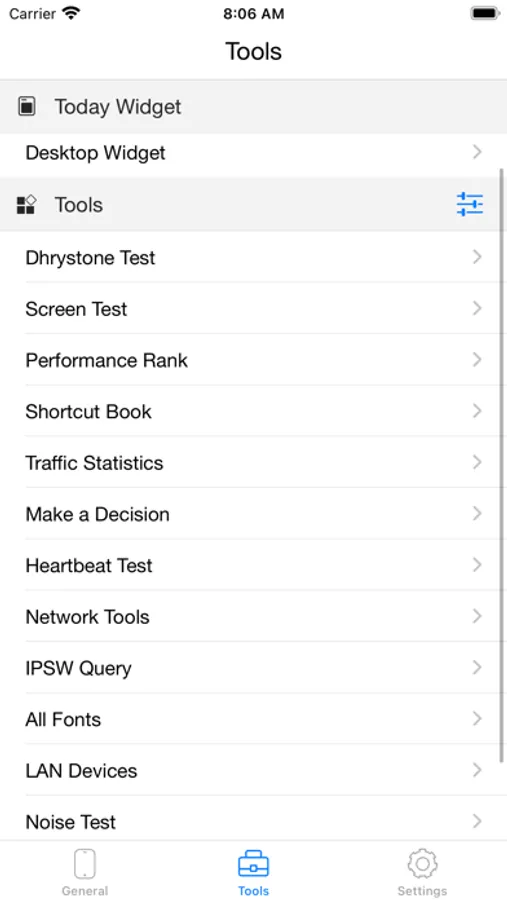 8. Common tools: heart rate test, network tool, noise test, make a decision, traffic statistics, screen test, etc.
