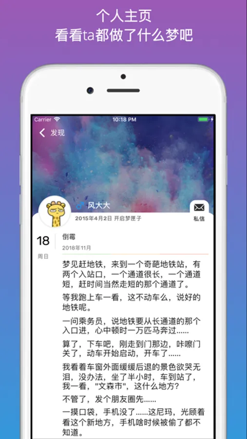 2、记录自己的梦,可以选择公开或者保密,并选择标签