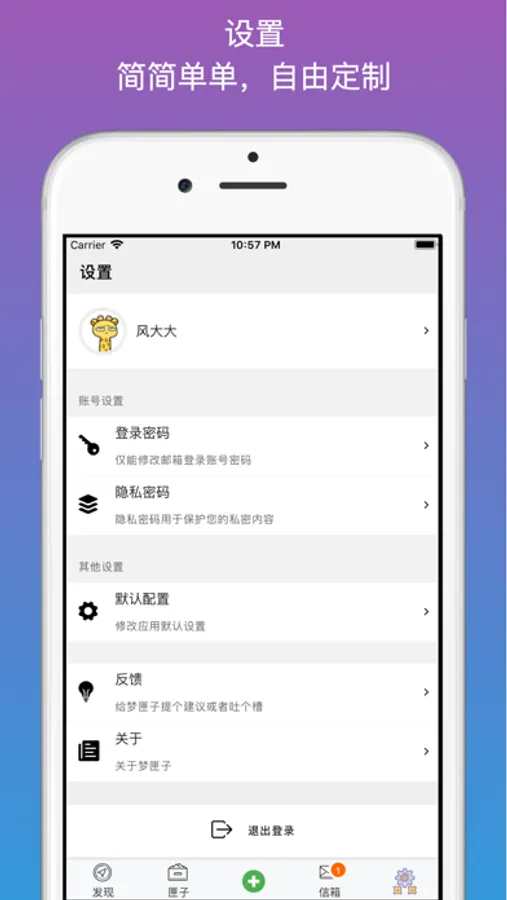 5、设置自己的头像,昵称信息,并可以设置隐私保护手势