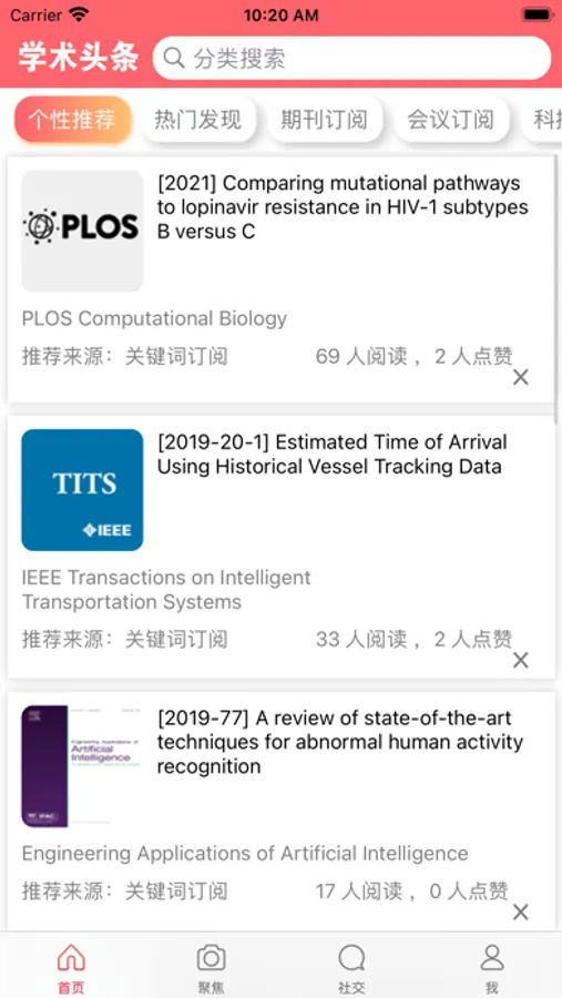 舒适而精深的学术论文APP,依靠智能的推荐算法,在千万篇论文中甄选出您爱的那篇。在这里,不仅仅可以通过搜索的方式查阅论文,我们更是提供了作者、关键词、期刊会议的搜索入口,节省宝贵时间的同时,也让您不必担心找不到心仪的文章。无论是钟爱的期刊会议,还是关注的征稿信息,甚至是久仰已久的作者以及不易发觉的关键词,都可以一键订阅提醒,不错过任何一条与您息息相关的信息。