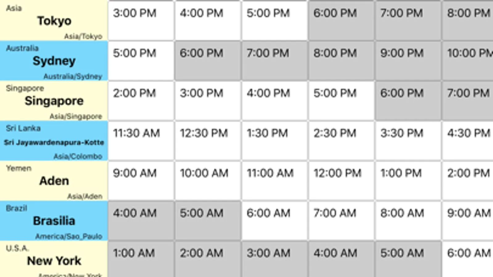 With the "World Clock" in iOS preinstalled application "Clock", you can know the current time of any place in the world. But if you want to know the time of another place at 9 p.m. in this place, the calculation is not easy.
