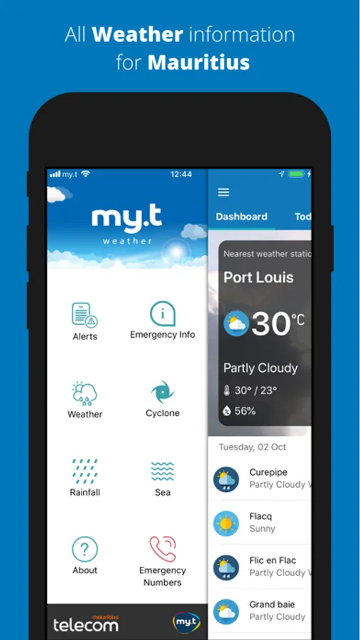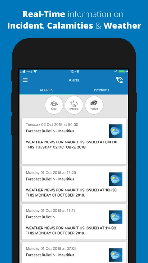 my.t weather allows relevant authorities to send news and other vital information with regards to weather, major incident and calamities to users of my.t weather App.