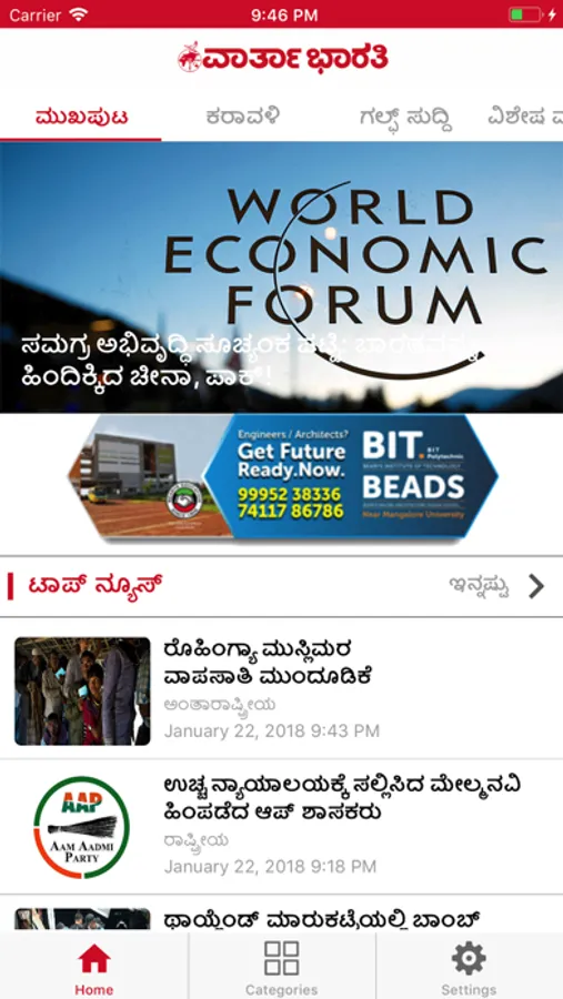 Vartha Bharati Kannada Daily is published simultaneously from Mangaluru, Bengaluru, and Shivamogga. Within a short span of time, Vartha Bharati has emerged as the fastest growing Kannada Daily. Apart from having very a formidable circulation base across Karnataka, VB is the highest read Kannada Daily in Gulf Countries, Europe, and the USA. Through its website (varthabharati.in), E-paper and social media platforms, today VB has become the daily companion of Global Kannadigas. Vartha Bharati is known for its simple and lucid language, objective reporting, insightful editorials, eye-opening articles and analysis and special reports. Vartha Bharati has won the Transparency International award for accuracy and objectivity in journalism, during the year 2009.