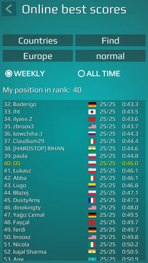 Discover new challenges during playing in flag and capital mode. Try to prove yourself in extraordinary elimination mode.