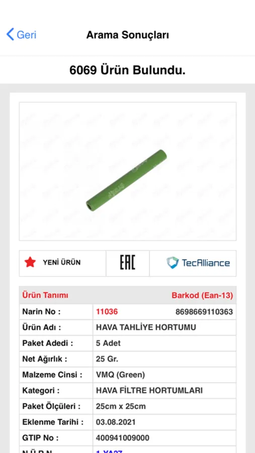 Mobil uygulamamızdan, ürün listesine erişebilir ve ürün listesinden arama yapabilirsiniz.