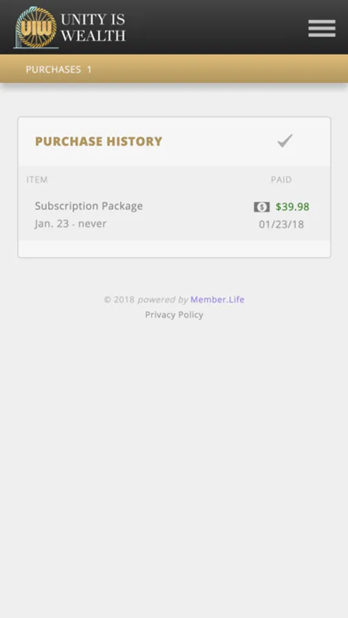Purchase History - View your past purchases within our app. Never again wonder what purchases were made and if your balance is in good standing.