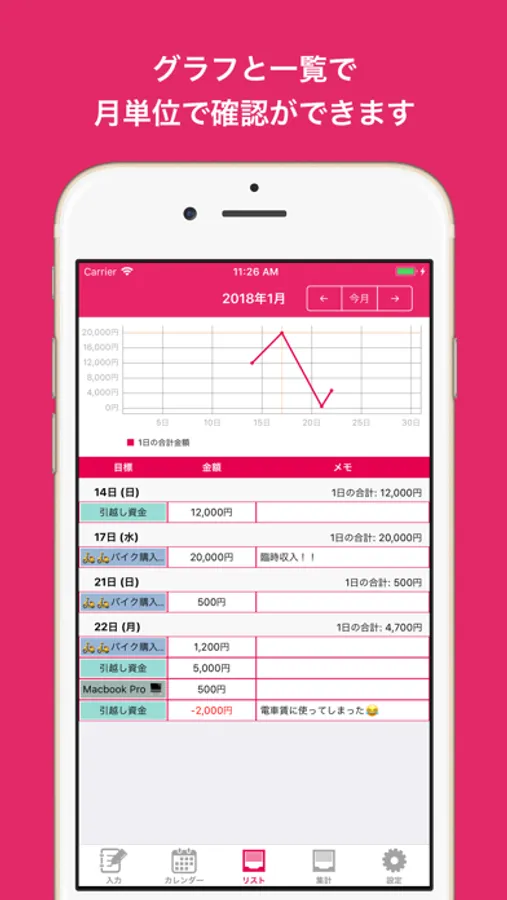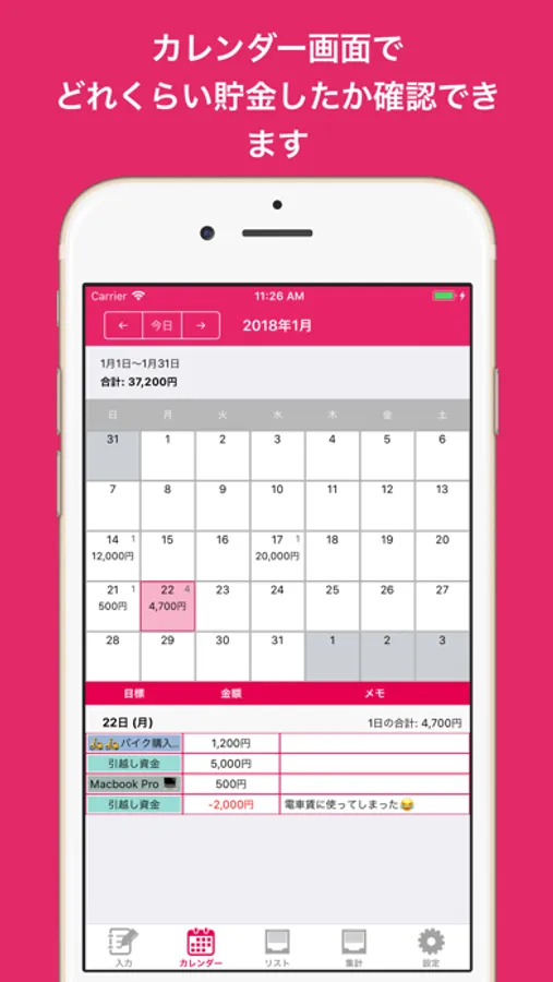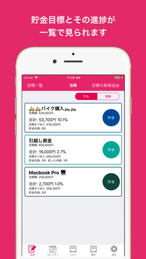 ・複数の目標を立て、それぞれの進捗を確認できます。