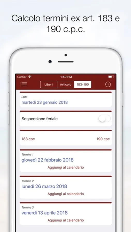 - Calcolo libero, calcolo per articolo, e calcolo dei termini ex art. 183 e 190 del codice di procedura civile.