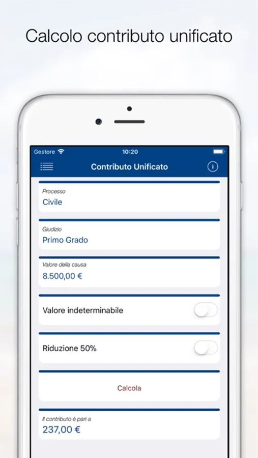 - Calcola il valore del contributo da versare in base all'autorità giudiziaria, al grado della causa ed al valore.