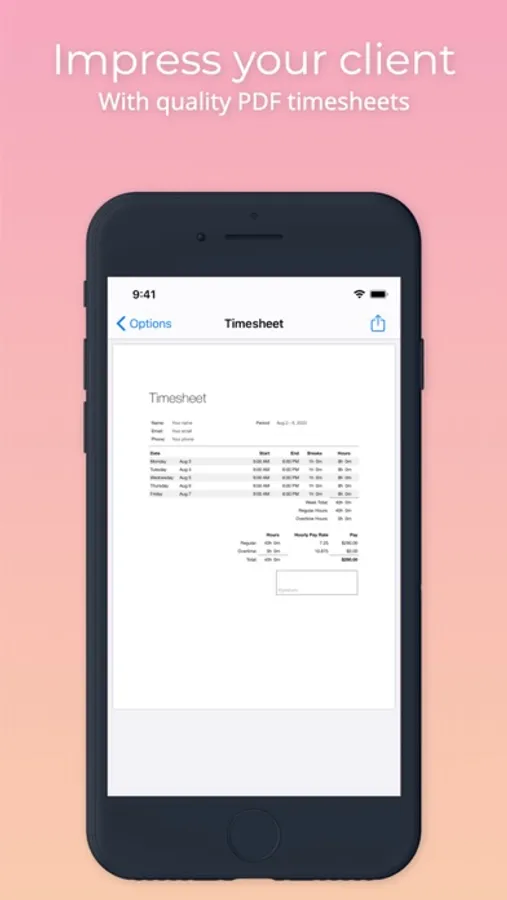 Try it for free -- the timesheets in the free version contain a watermark so you can test all functionality and decide whether you are happy with the app. Upgrade to the Pro version with an in-app purchase to remove the watermarks and be able to support unlimited projects.