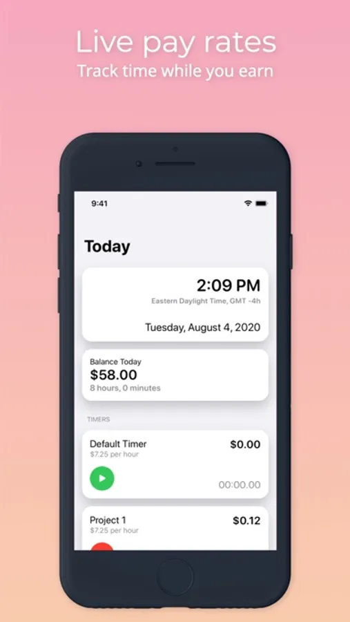 1. One-click timers to start tracking your time, with a default timer and a timer for every project you create. Realtime pay tracking supported.