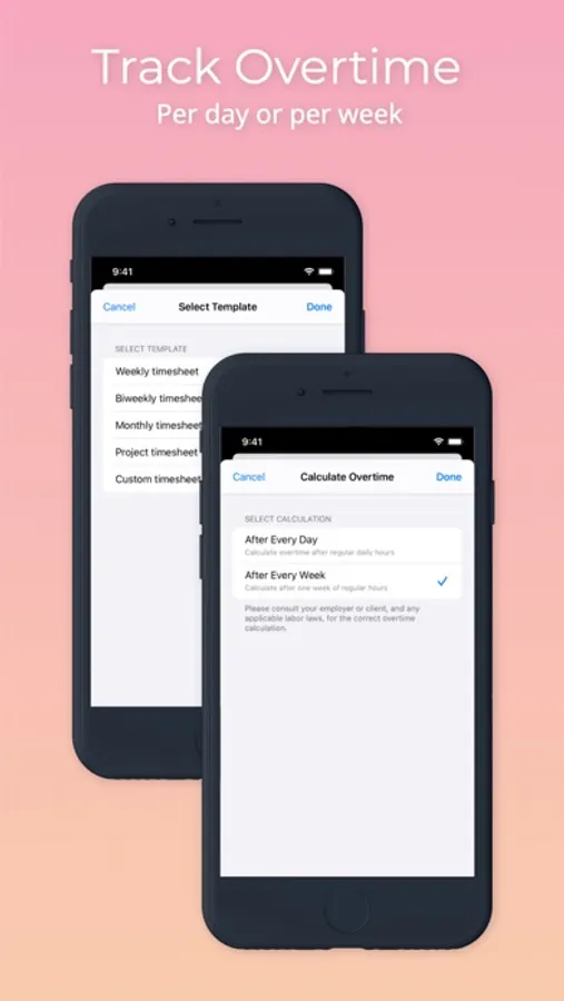 3. A variety of options for your timesheet, so you can customize your own. These include the ability to have overtime daily or weekly, and the ability to include hourly pay rates.