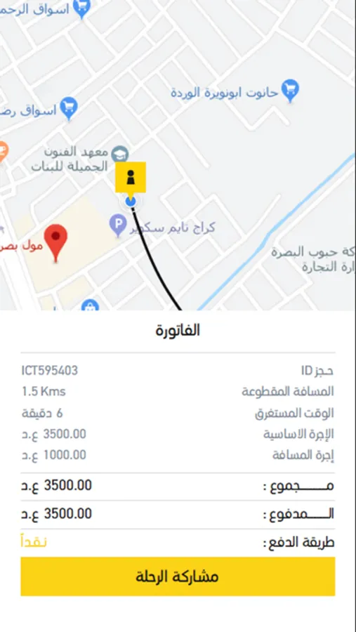 هذا التطبيق عبارة عن منصة الكترونية تتيح للمستخدم طلب سيارة الاجرة بطريقة ذكية و بسيطة و سريعة من خلال مشاهدة اقرب سائق تكسي متوفر خلال مسافة ٥ كم حيث يقوم بتحديد الوجهة الخاصة به عن طريق تحديد مكان تواجده و الوجهة التي هو ذاهب اليها على الخريطة و مشاهدة تكلفة هذه الرحلة بصورة واضحة و الوقت التقريبي الذي يحتاجه للوصول الى تلك الوجهة و معرفة السائق و نوع سيارته مع امكانية الاتصال بالسائق حيث يقوم التطبيق بتنيه المستخدم حال وصول السيارة الى مكانه مجنبا المستخدم من الانتظار و الوقوف في الشارع تلافيا مختصرا بذلك وقت الانتظار في الشارع و توفير الراحة له