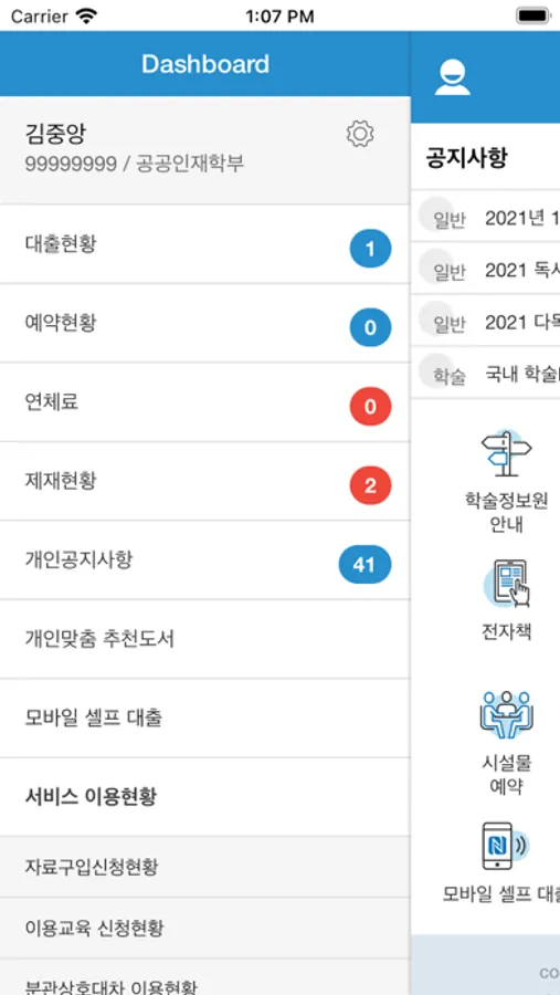 - 도서관 공지사항, 자주찾는질문, 1:1 문의하기 서비스를 제공합니다.