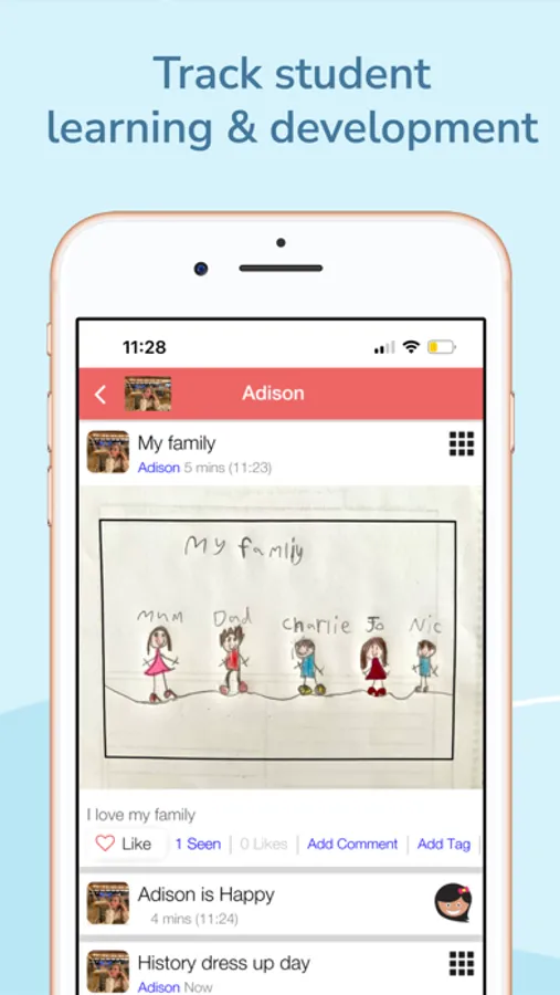 Teachers in the classroom can quickly post pictures, updates and reminders etc to the class blog and also access individual students' personal timelines.