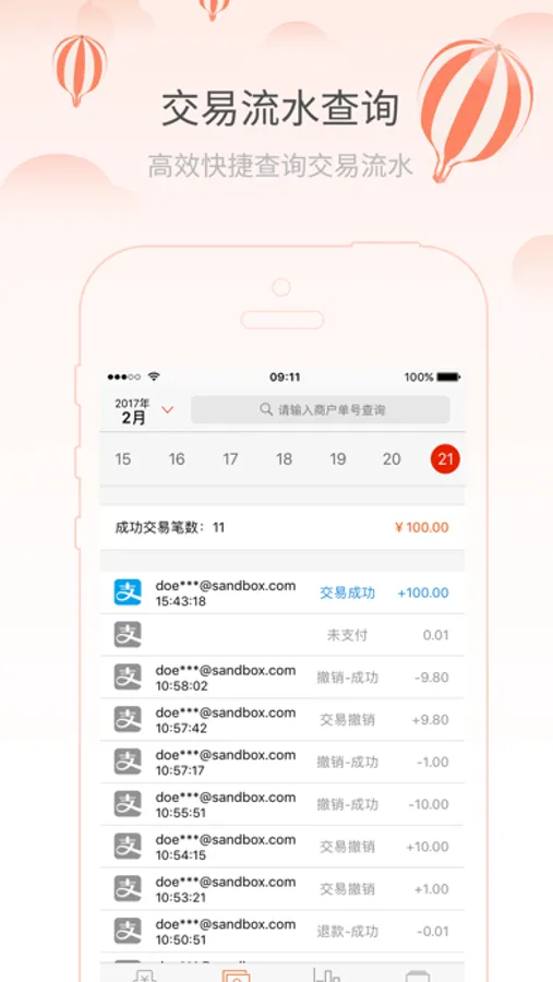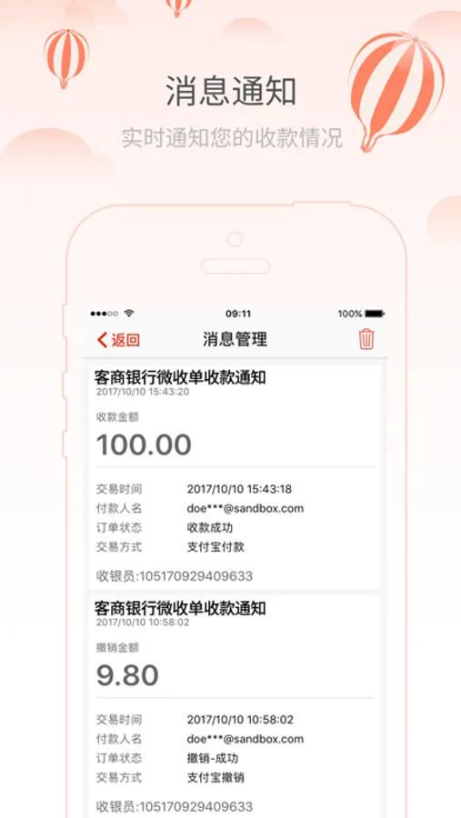 交易信息实时推送,每一笔交易均有实时消息推送。