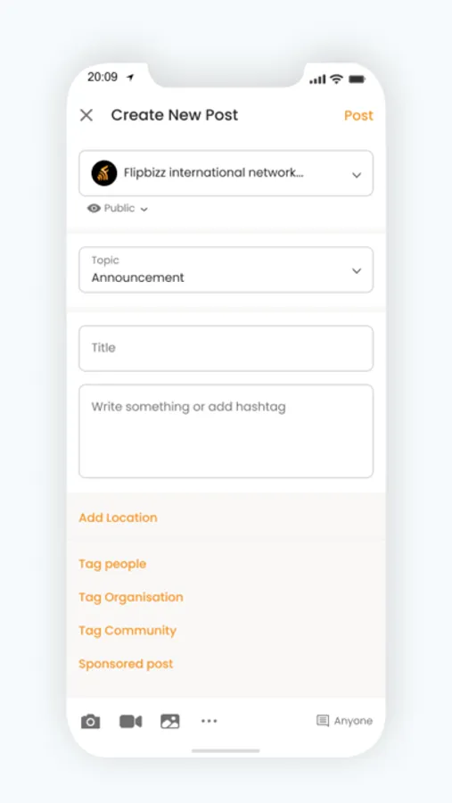 • Create posts or listing, share videos or photos to initiate conversations with people!