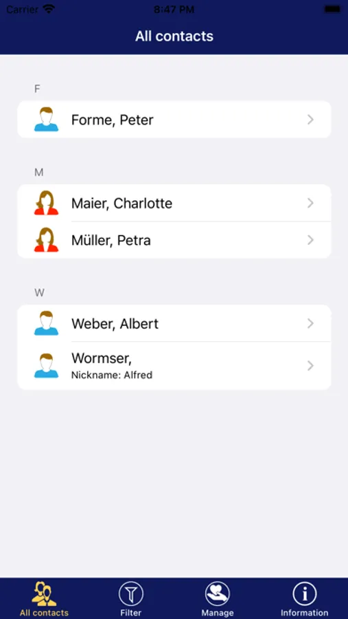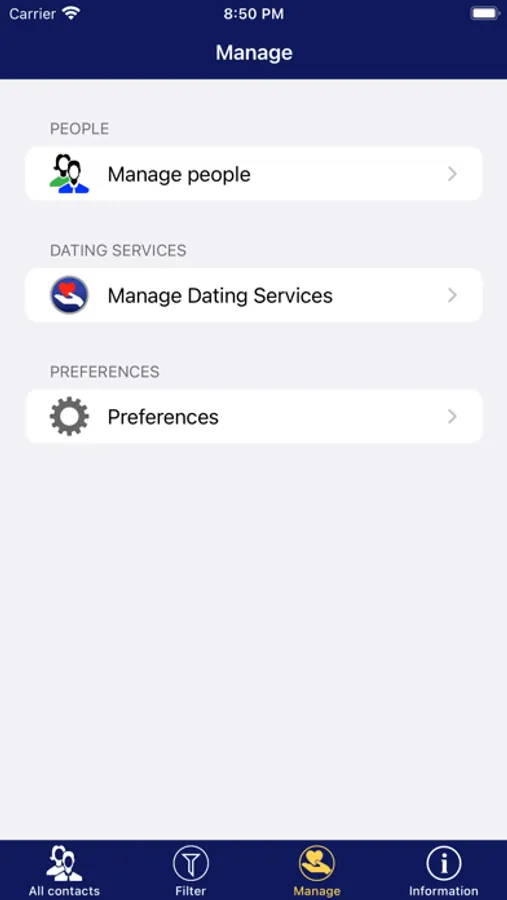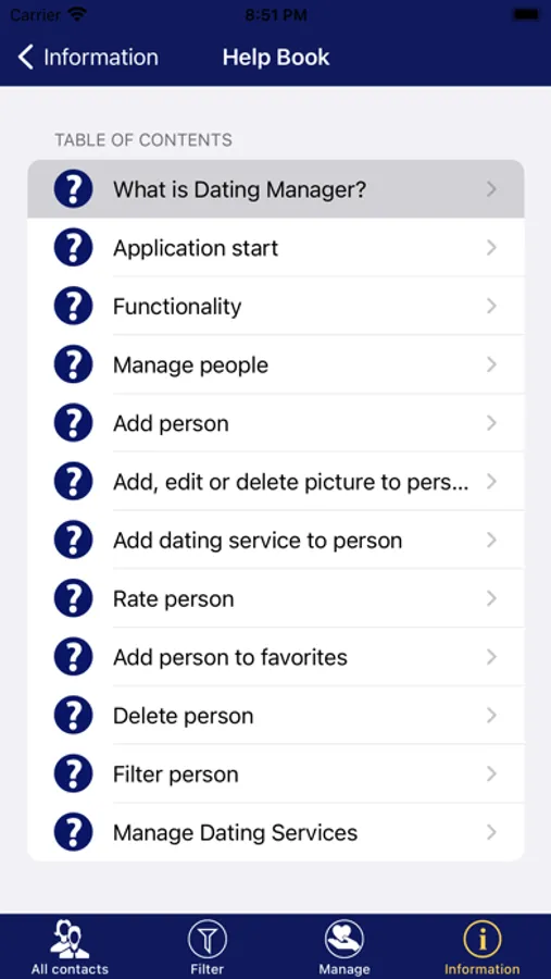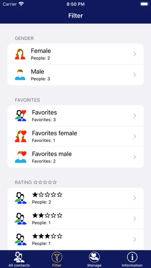 • Filter list of dating contacts by