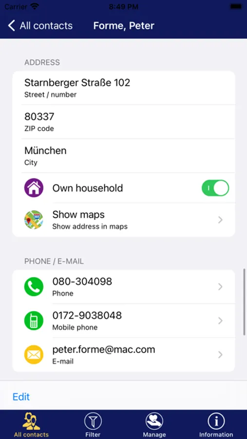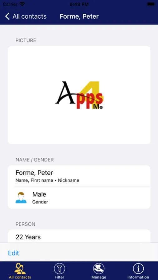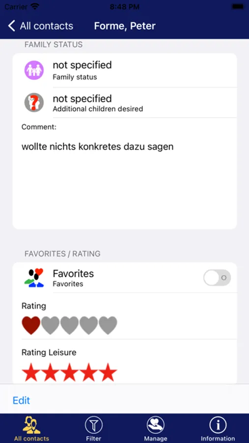 «Dating Manager» manages all contacts and their details of your dating partner. Thus, you have an instant overview of all the dating partner and you not need to login at each individually site and read the respective profiles.