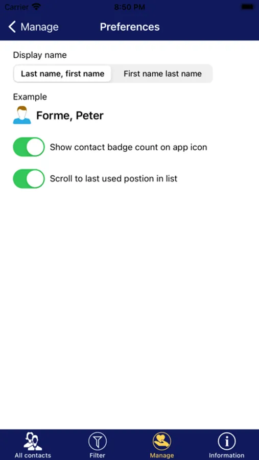 • Nickname, first name, last name