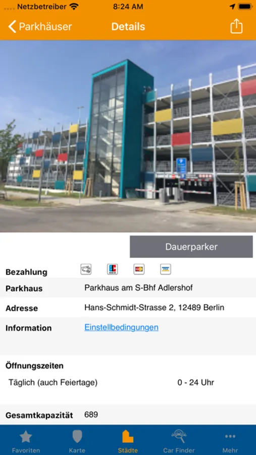 Mit Hilfe der Goldbeck Parking APP können Sie auch unterwegs sofort online einen Überblick über Goldbeck Garagenstandorte, die aktuelle Entfernung (Luftlinie), Zufahrtsmöglichkeiten, Tarife, Öffnungszeiten sowie weitere Ausstattungsmerkmale der Parkplätze und Parkgaragen erhalten. Selbstverständlich führt Sie die APP mittels der integrierten Navigation gleich direkt zum ausgewählten Standort, den Sie auch gleich unter Ihren persönlichen Favoriten ablegen können. Die Funktion Car Finder speichert automatisch (GPS-Koordinaten) den aktuellen Standort. Zusätzlich kann der Anwender einen Kommentar eingeben (z.B. Etage, Parkplatznummer) sowie ein Bild von der Parkposition erstellen. Anschließend führt sie die Funktion mittels Darstellung auf der Karte oder dem installierten Navigationsprogramm (z.B. Navigon oder TomTom) zum Standort ihres Autos zurück.
