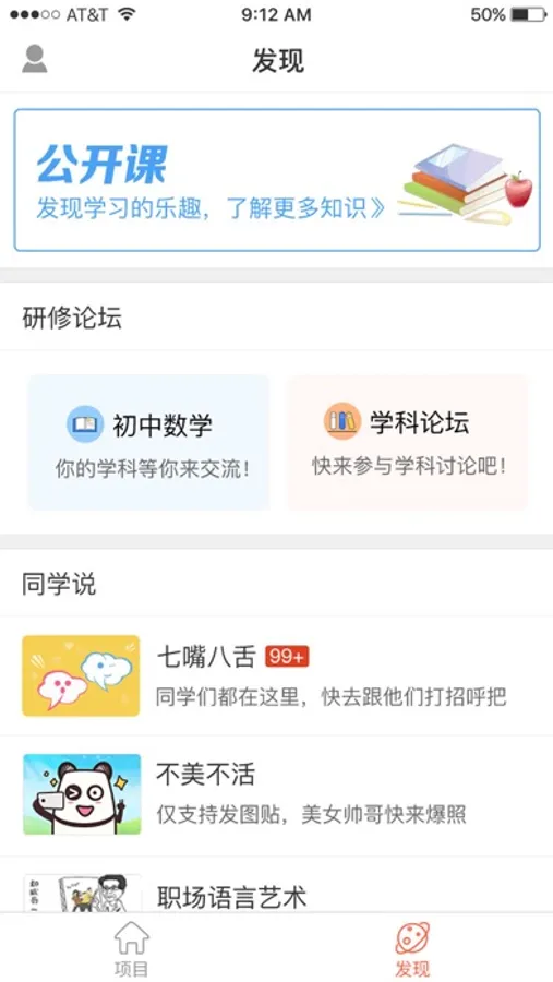 选择自己喜欢的公开课,在公开课圈子里和大家讨论学习。