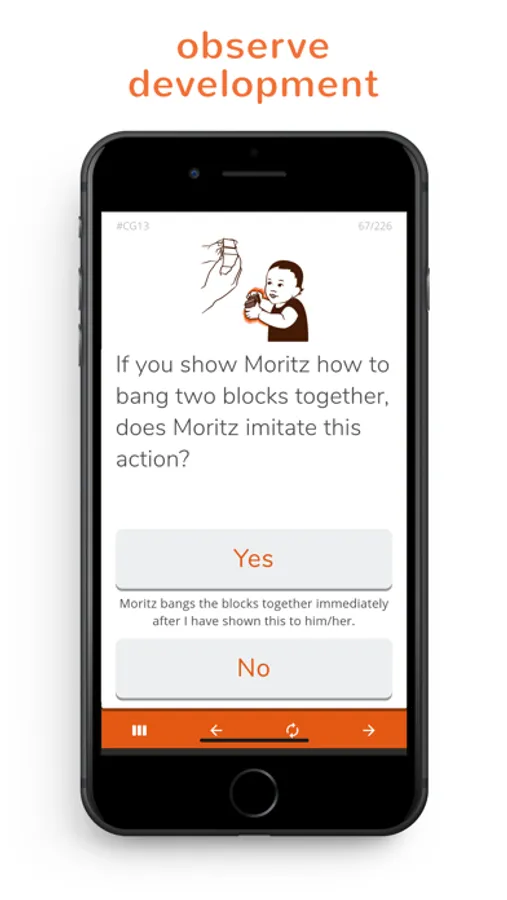 By doing this, you will not only learn about the emergence of your child's abilities but also help us at the University of Zurich to understand the individual development of children and evaluate in what order children master new skills.