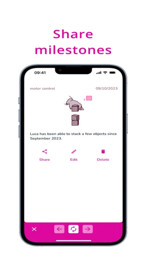 Capture the best moments in your child's development wherever you are, with a photo or text, simple and intuitive in a personal diary. Entries are displayed chronologically in the Pebbles app, including the milestones that your child achieved.