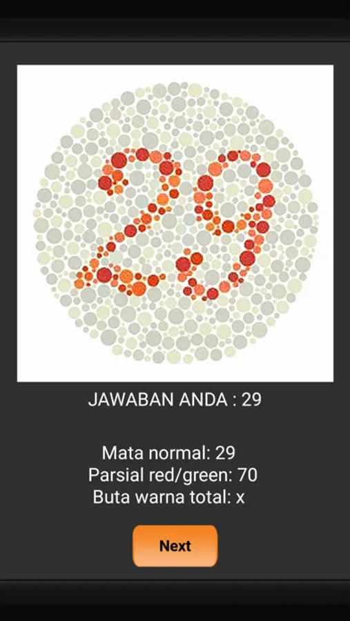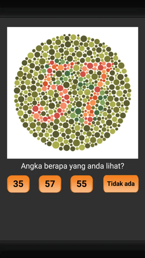 Kondisi dimana kemampuan membedakan warna tertentu adalah normal. Ini berarti bahwa seseorang yang menderita buta warna mengalami kesulitan melihat warna merah, hijau, biru, atau kombinasinya. Aplikasi ini membantu anda untuk mengetahui kelemahan pengenalan warna pada mata anda.