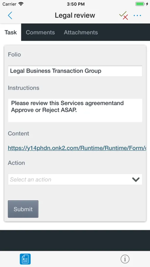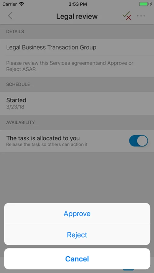 • Task management capabilities, like redirect and share allow you to make decisions quickly, even when business needs change on the fly. Send tasks to a different user or ask for someone else’s input from a single interface.